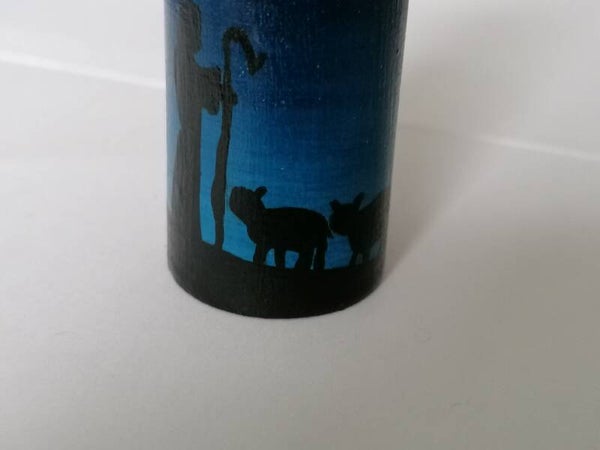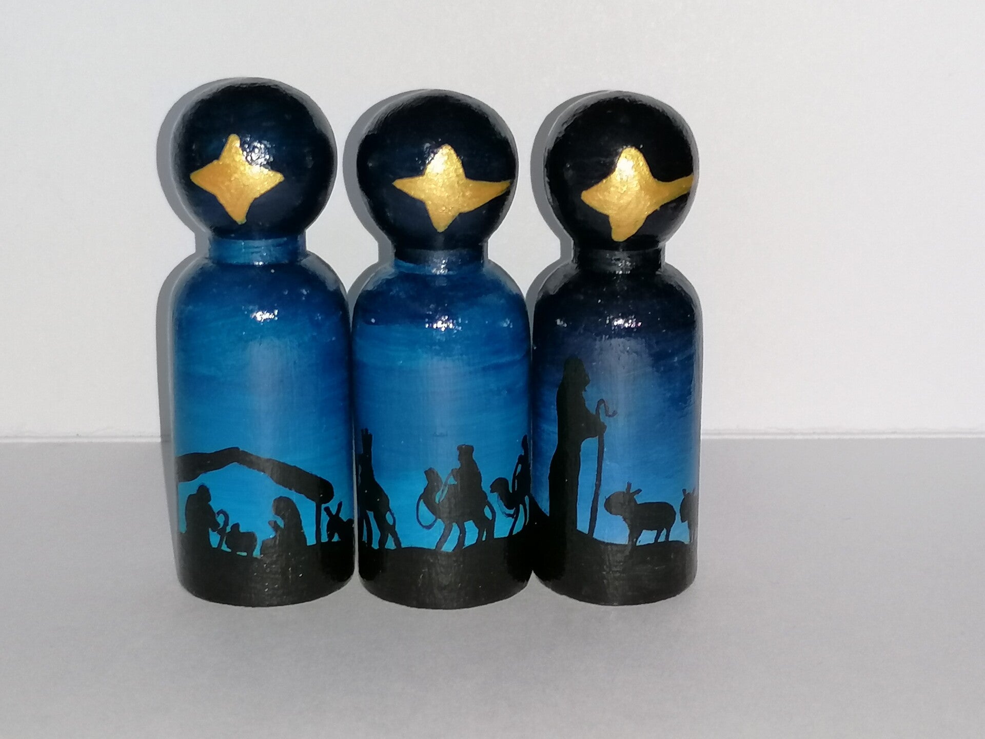 Bijzondere pegdoll set in een blauw kleurverloop. Deze set vertelt het kerstverhaal.