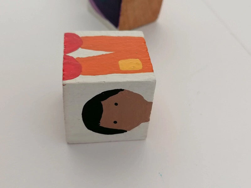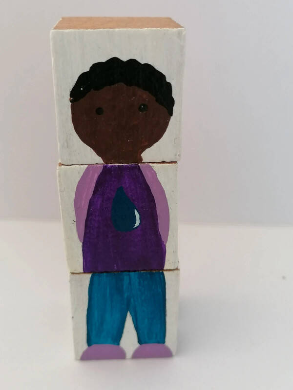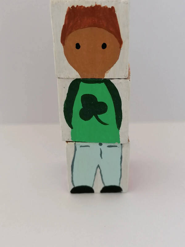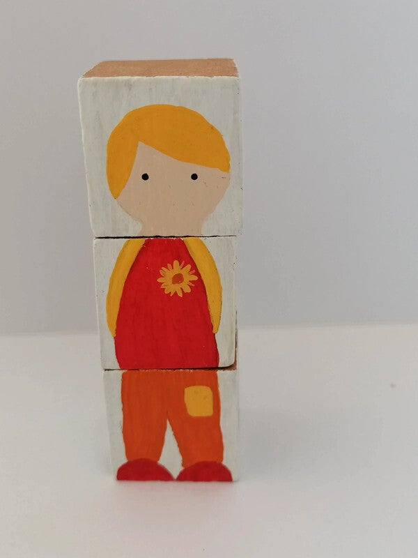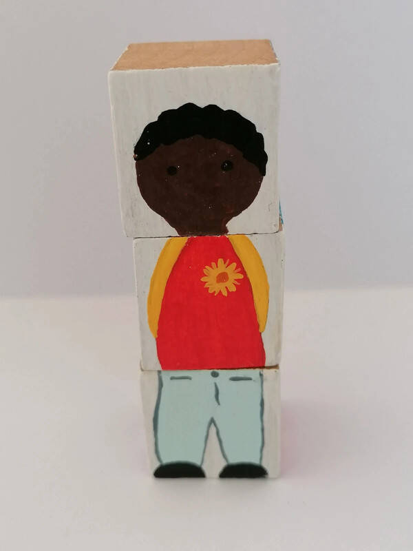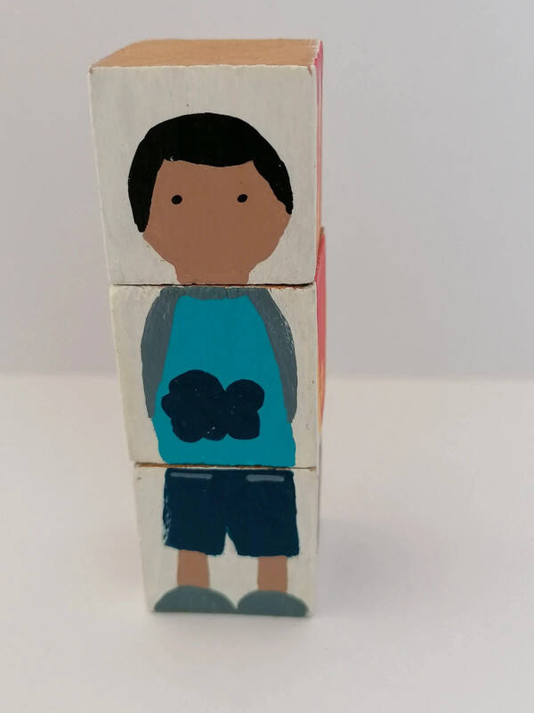 Elk blokje heeft 4 zijdes met een stukje jongen.
