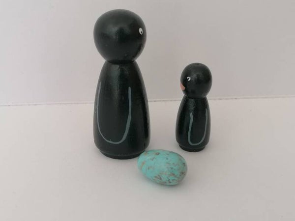 Een klein zwart vogeltje van 3,5cm en een grote mamma/pappa vogel 5,5cm
